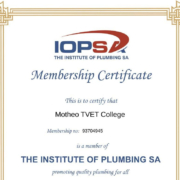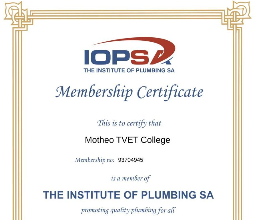 The Motheo TVET College is now officially a member of the Institute of Plumbing South Africa (IOPSA), which is the largest and most relevant professional association for plumbers and HVAC technicians. IOPSA is a national body promoting vocational excellence, supporting TVET institutions, and upholding highest professional standards in the South African plumbing industry.